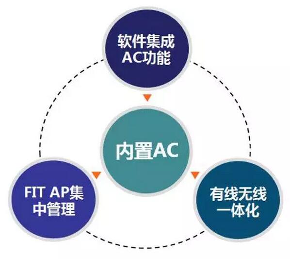 設備內置AC功能,并免費自帶4個AP管理授權,實現有線無線一體化組網,對FIT AP集中管理,簡化組網,便于管理